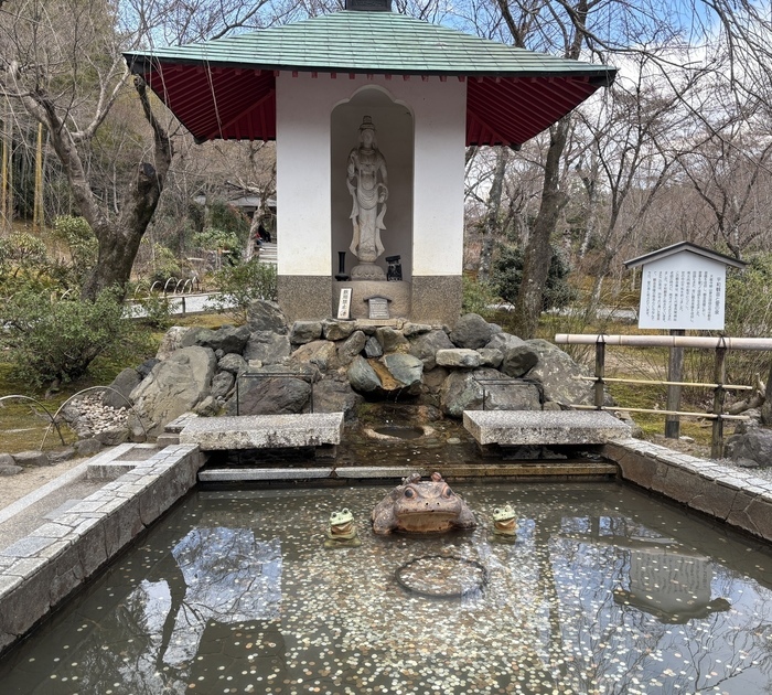 その途中でカエルの置物が浮いている小さな池があり