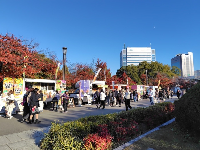 また、屋台の賑わいと、園内を巡回するトレインの汽笛が心地よいアクセント