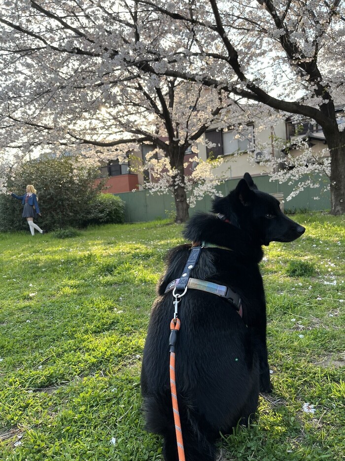 桜吹雪を犬と潜り抜けた時